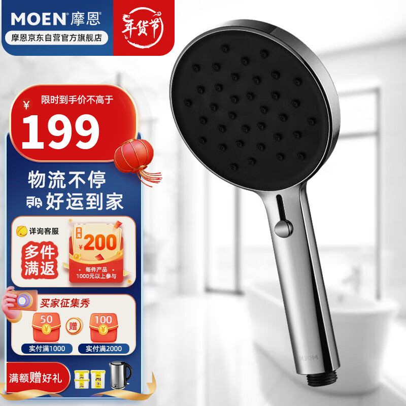 摩恩(MOEN)无极系列淋浴花洒 手持喷头手持花洒喷雾花洒 单手持花洒202010价格:199.00元!