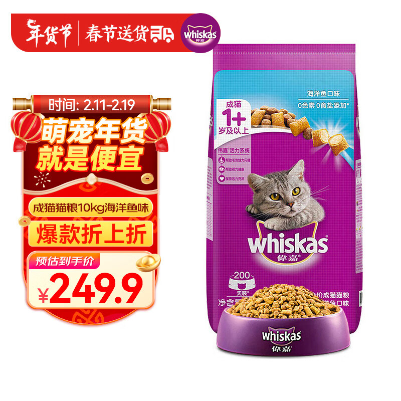 伟嘉成猫猫粮10kg海洋鱼味布偶蓝猫橘猫加菲英短猫咪全价粮价格:224.90元!