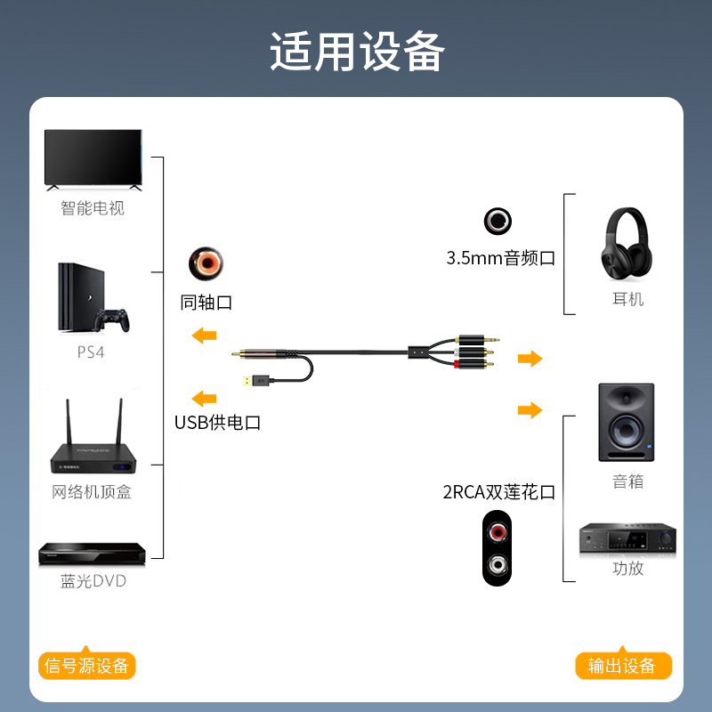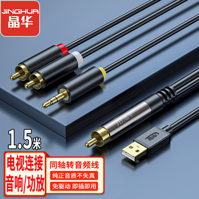 晶华(JH)同轴音频转换器线 电视机顶盒PS4外接双莲花2RAC+3.5mm音频耳机音响音箱功放1.5米 Z236E价格:40.90元!