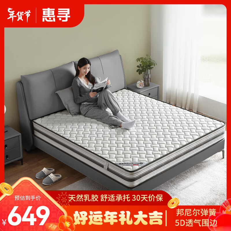 惠寻 京东自有品牌席梦思弹簧天然乳胶邦尼尔软硬适中1.5*2米22cm厚价格:649.00元!