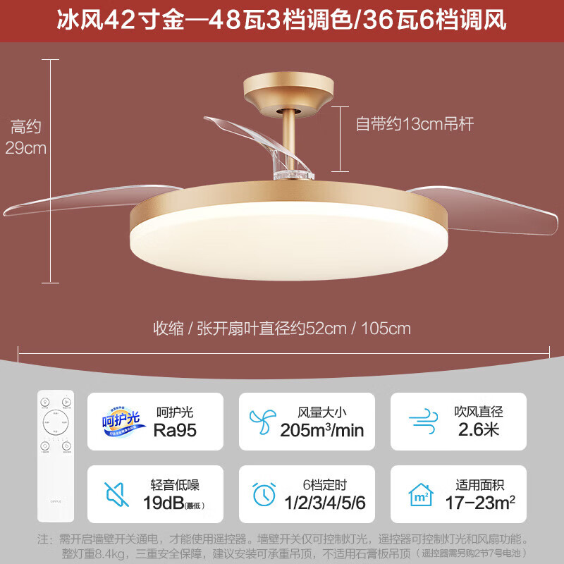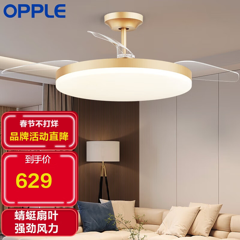 OPPLE吊扇灯隐形风扇灯led餐厅卧室客厅大尺寸欧式灯具电扇灯 送遥控器价格:628.80元!
