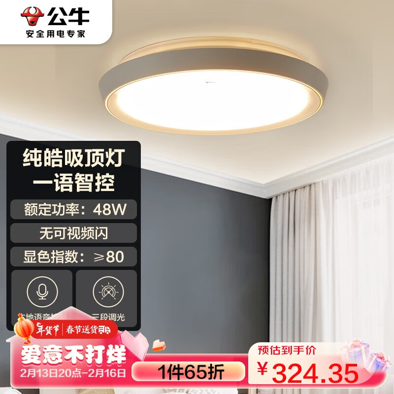 公牛(BULL)吸顶灯纯皓智能语音卧室灯客厅灯MX-B048G-MS三段调光调色48W价格:499.00元!