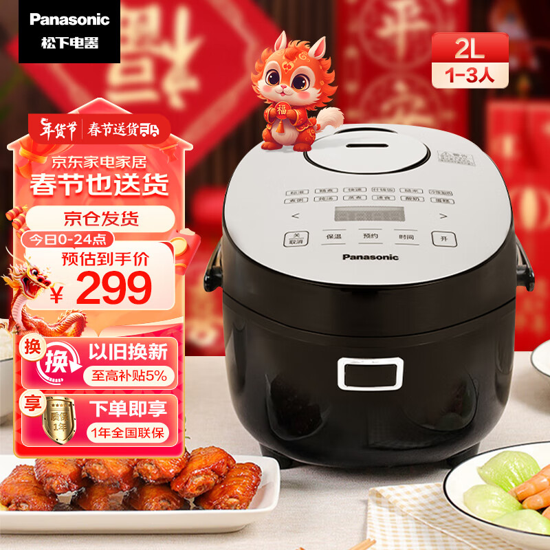 松下(Panasonic)2.0L 微电脑电饭煲 1-2人 天面触摸操作 多功能菜单 智能米粮判定 SR-DB071-K价格:292.00元!