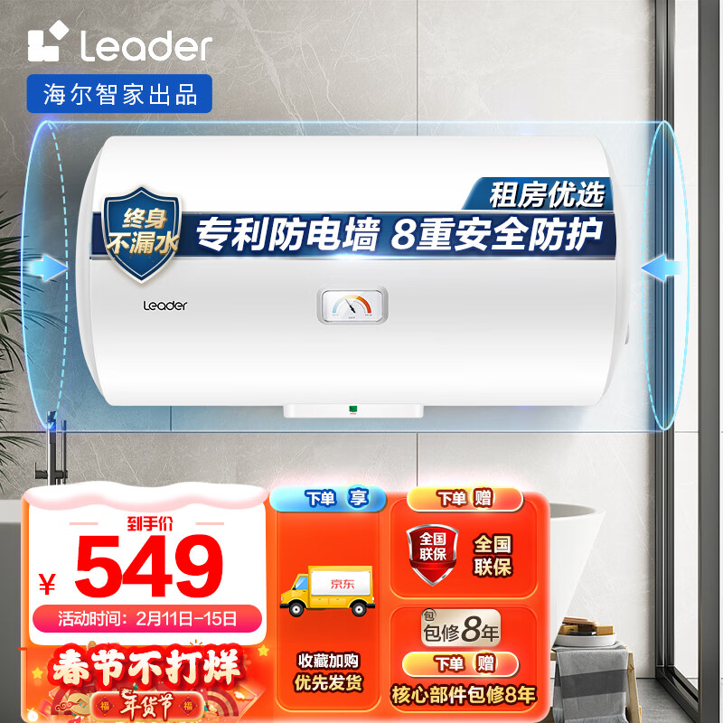 海尔智家出品Leader 50升电热水器 节能保温 新鲜活水 专利防电墙洗浴 LEC5001-20X1价格:549.00元!
