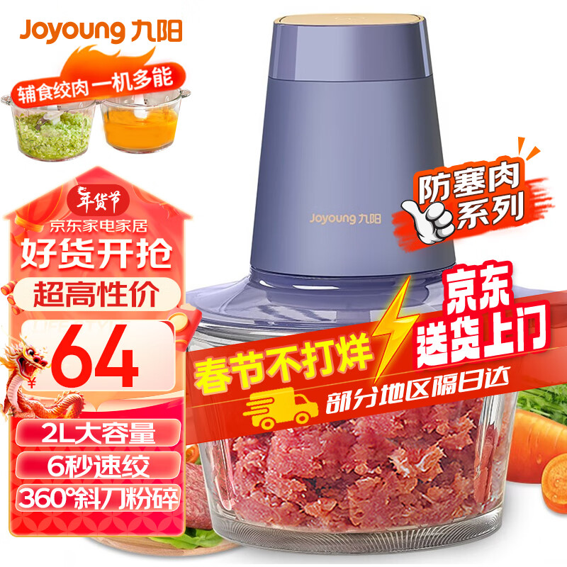 九阳(Joyoung)绞肉机家用 绞馅机 碎肉机 电动多功能料理搅拌机打肉机饺子肉馅蒜蓉机 搅肉机【年货】S18-LA170价格:64.00元!