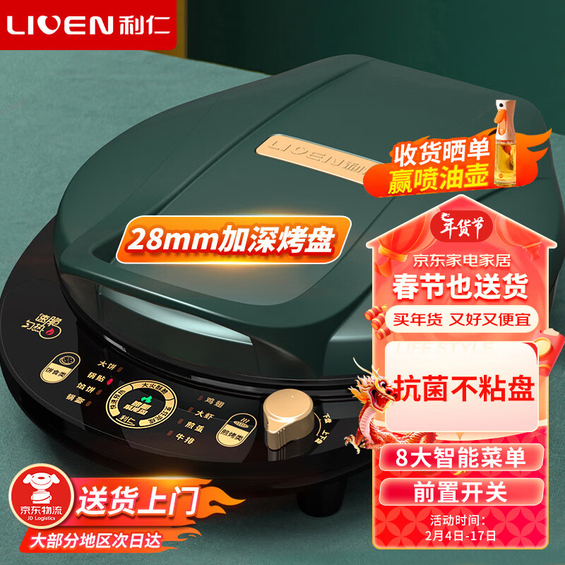 利仁(Liven)电饼铛家用加深烤盘电饼档大号双面煎烤 智能煎饼锅烙饼锅大尺寸三明治早餐机薄饼机LR-D3059价格:109.00元!