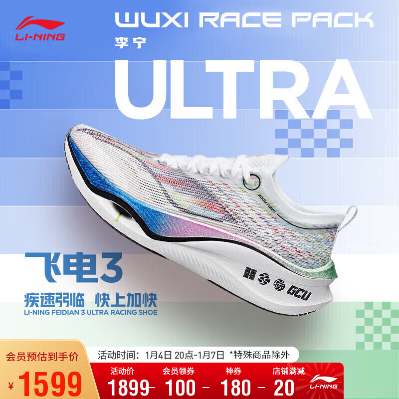 李宁飞电3.0 ULTRA丨跑步鞋情侣鞋支撑稳定高回弹竞速跑鞋ARMT033价格:1899.00元!