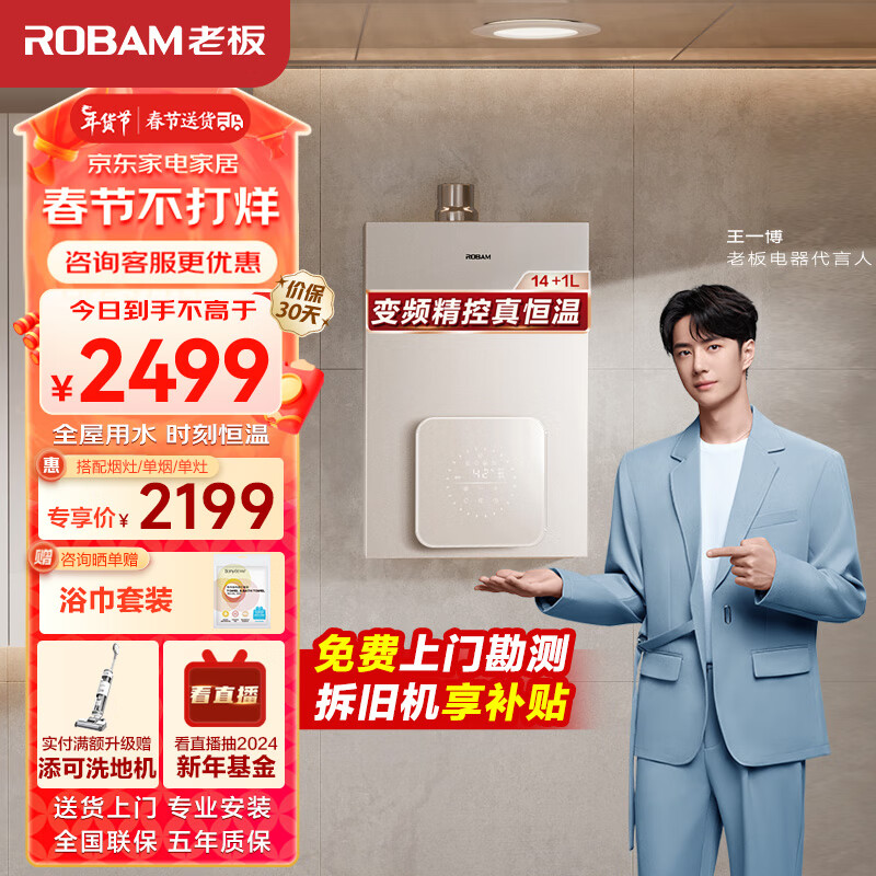 老板(Robam)14+1升燃气热水器天然气 家用智慧防冻智能变频精控恒温 下置变频风机强鼓式HD660A-14价格:2499.00元!