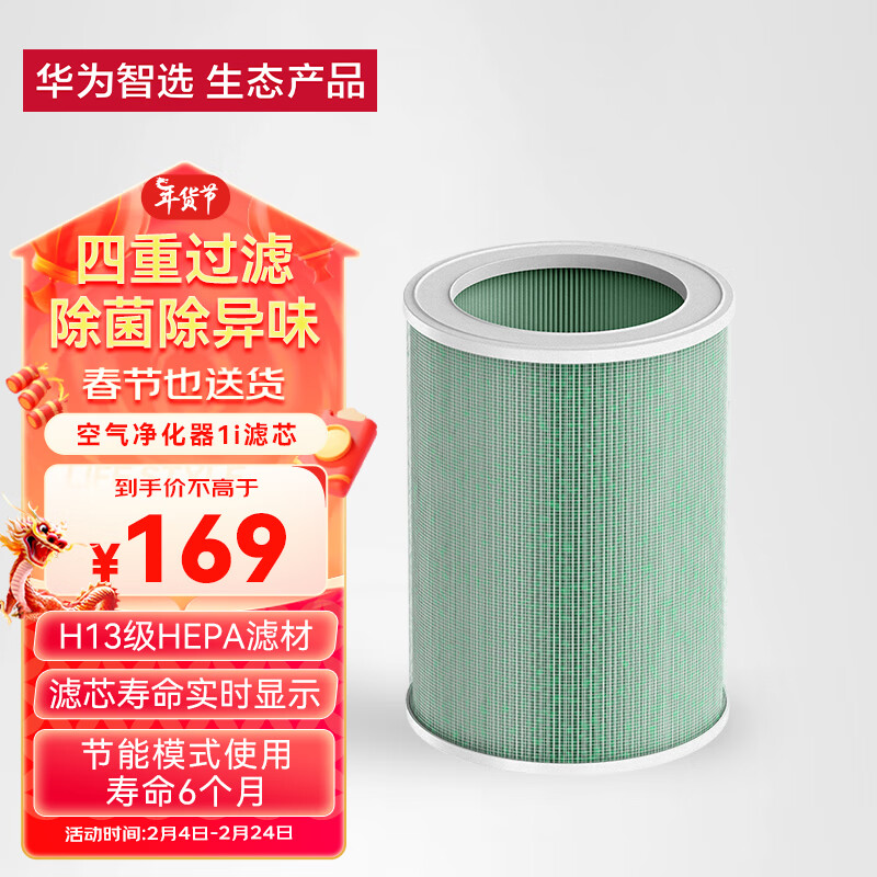 华为智选 720空气净化器滤芯滤网 除甲醛除菌除烟味异味四重过滤 适配净化器1i价格:169.00元!