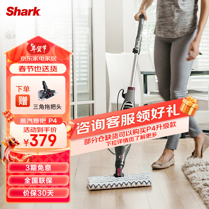 shark鲨客 蒸汽拖把 家用厨房清洁擦地拖地清洁机 高温蒸汽除菌 电动手持洗地机吸尘器伴侣P4价格:379.00元!