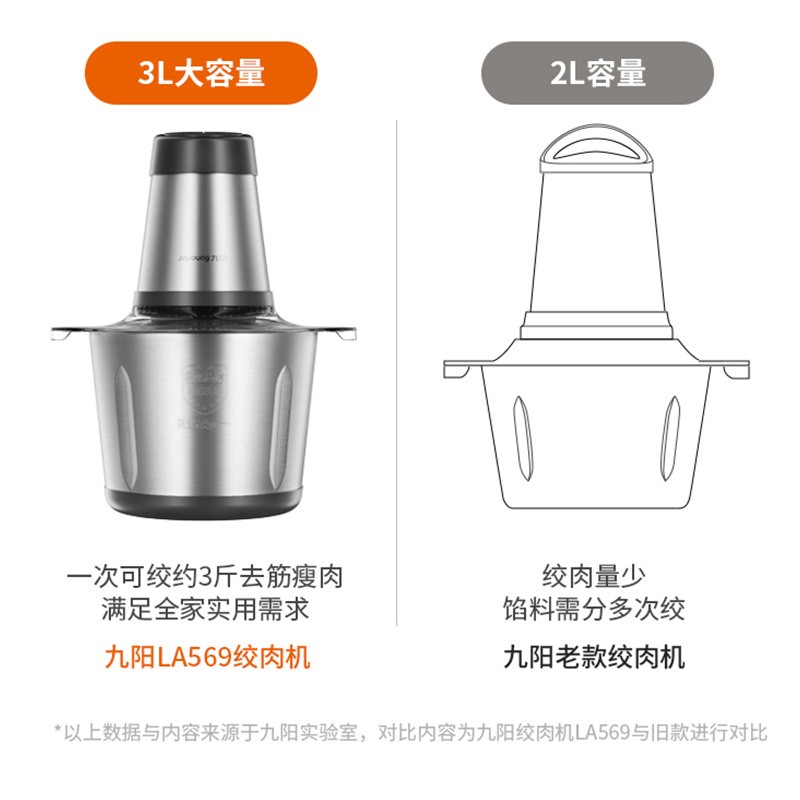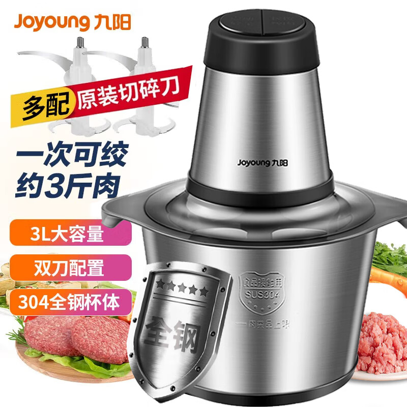 九阳(Joyoung)绞肉机家用电动多功能料理机搅拌婴儿辅食机切菜绞馅不锈钢碎肉S30-LA569(D)价格:159.00元!