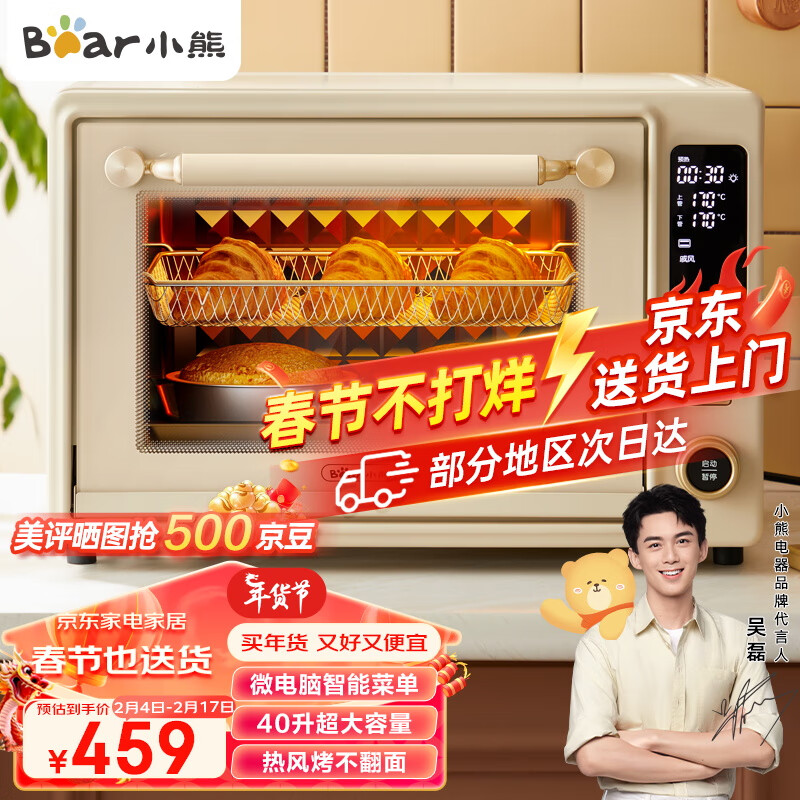 小熊(Bear)家用多功能电烤箱40L大容量独立控温升级搪瓷内胆智能菜单热风循环烤炸一体 DKX-C40Y3价格:459.00元!