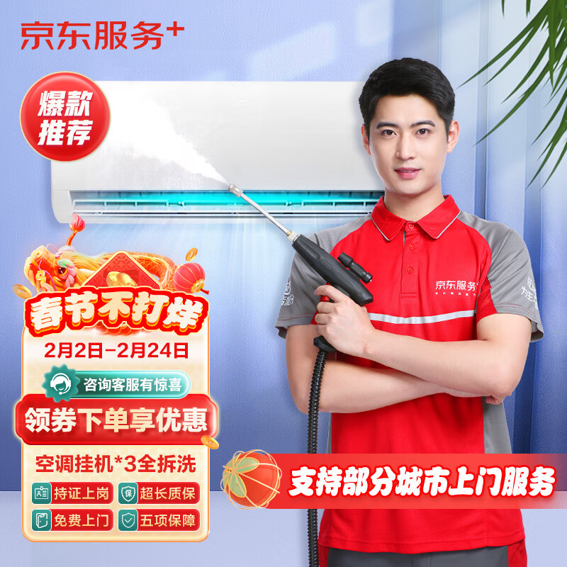 【京东服务+】空调挂机*3全拆洗 家电清洗 上门服务 家政保洁价格:289.00元!