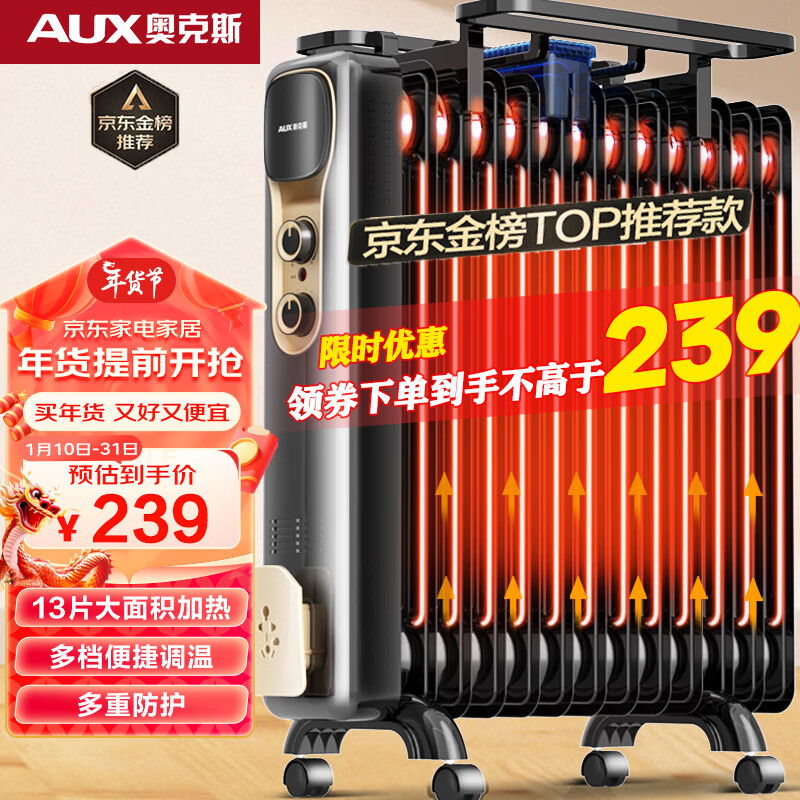 奥克斯(AUX)取暖器/取暖器家用/取暖电器/电暖器/暖气/电暖气片烤火炉油丁13片电热油汀电暖炉NSC-200-13A1价格:269.00元!