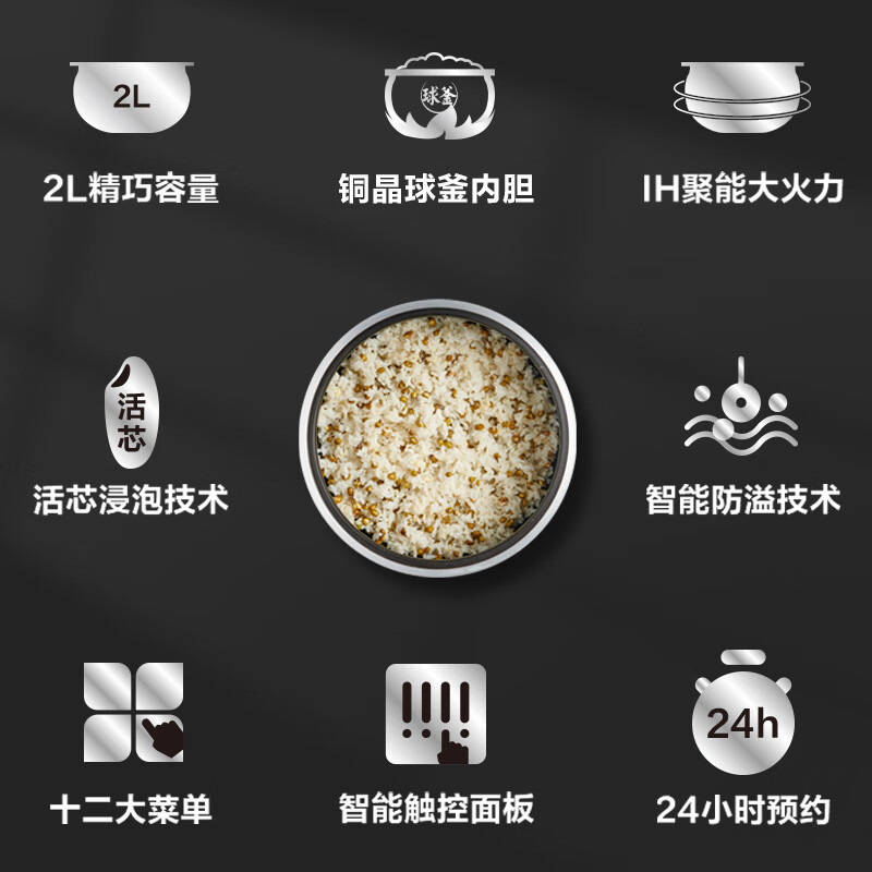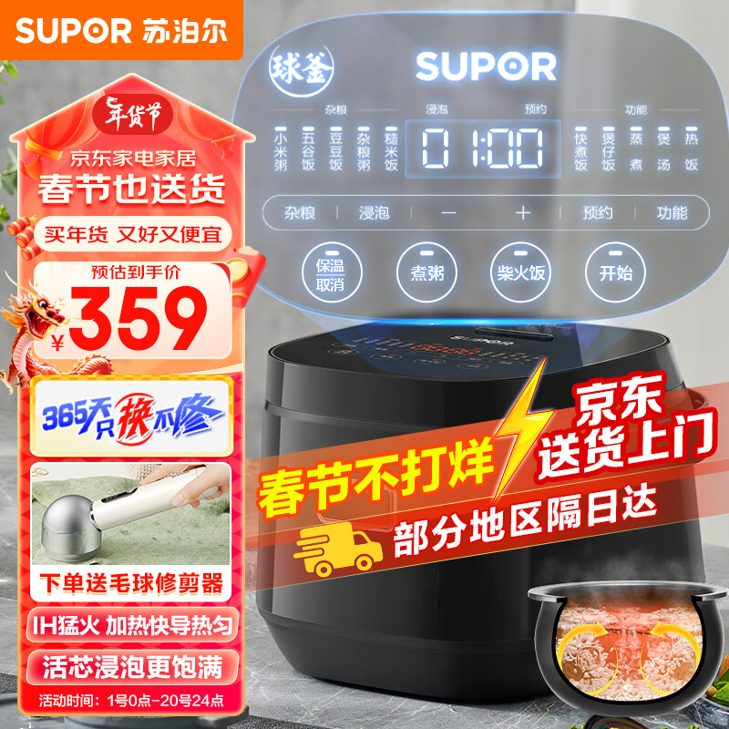 苏泊尔(SUPOR)电饭煲 电饭锅 2L智能IH电磁加热 活芯浸泡技术 五谷杂粮糙米智能防溢技术 触控面板 SF20HC949C价格:359.00元!