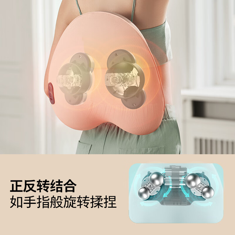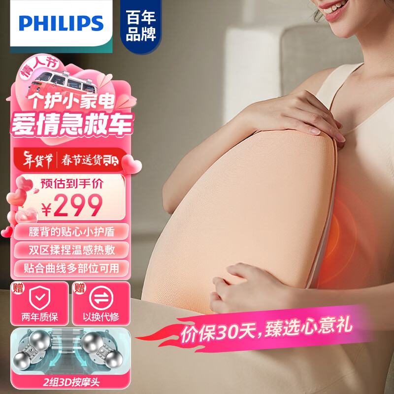飞利浦(PHILIPS)腰部按摩器按摩抱枕靠枕办公室靠垫无线热敷腰背按摩靠垫 全身肩颈椎腰背部按摩器心形抱枕3112B粉价格:329.00元!