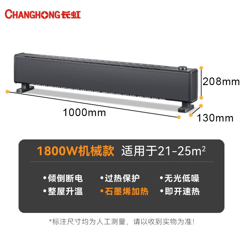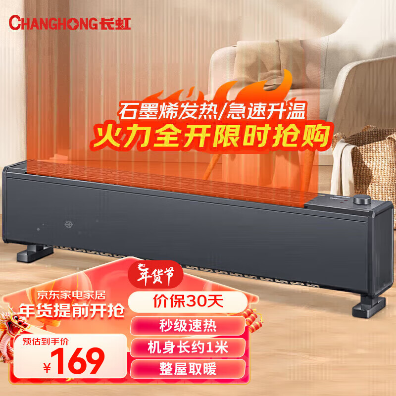 长虹(CHANGHONG)石墨烯踢脚线取暖器家用电暖器全屋速热电暖气循环对流移动地暖CDN-RG1617价格:179.00元!