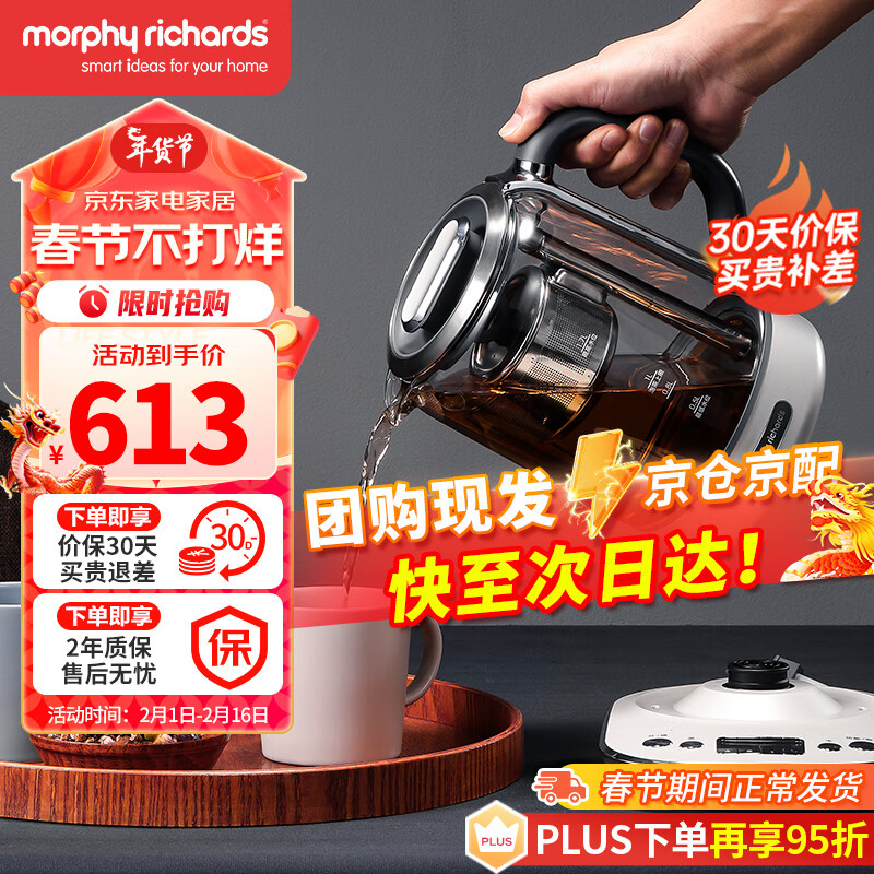 摩飞电器(Morphyrichards)养生壶煮茶器煮茶壶智能升降电水壶烧水壶电热水壶迷你玻璃花茶壶黑茶 MR6088白价格:613.00元!