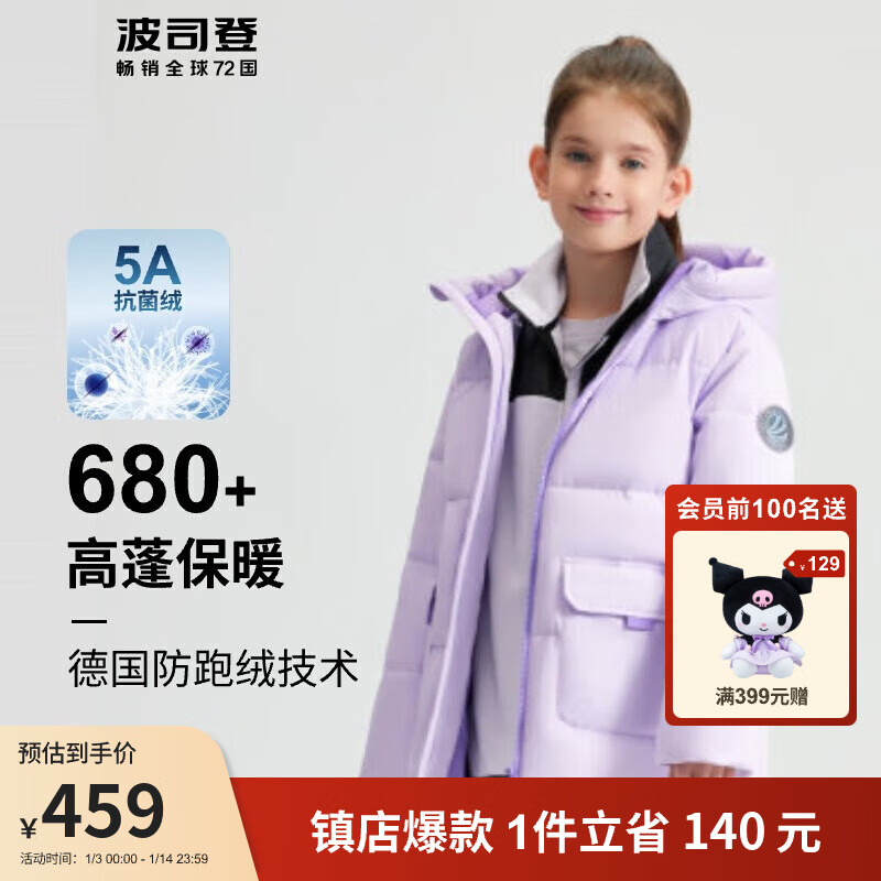 波司登2023秋冬男女童羽绒服中长款连帽保暖防风百搭休闲儿童外套T20145940E价格:599.00元!