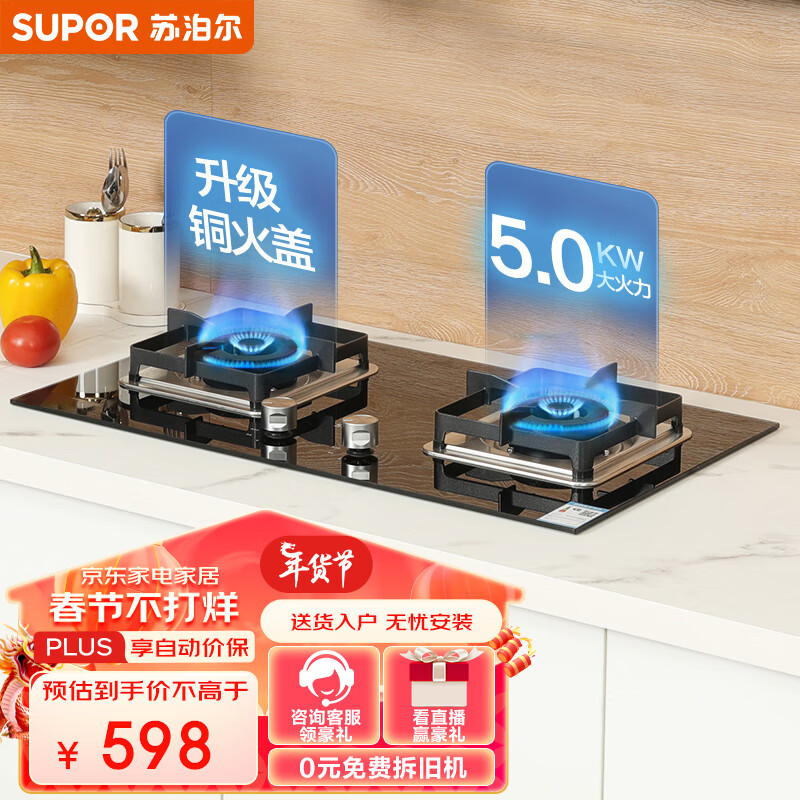苏泊尔(SUPOR)燃气灶双灶家用 天然气灶双灶具 5.0kW家用猛火灶 钢化玻璃双灶台嵌两用全进风 Q5天价格:519.00元!