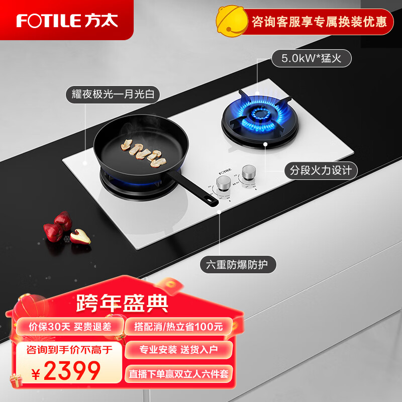 方太 燃气灶(天然气)家用嵌入式燃气灶 换装灶具 5.0kW*大火力01-THF1-W 月光白价格:2399.00元!