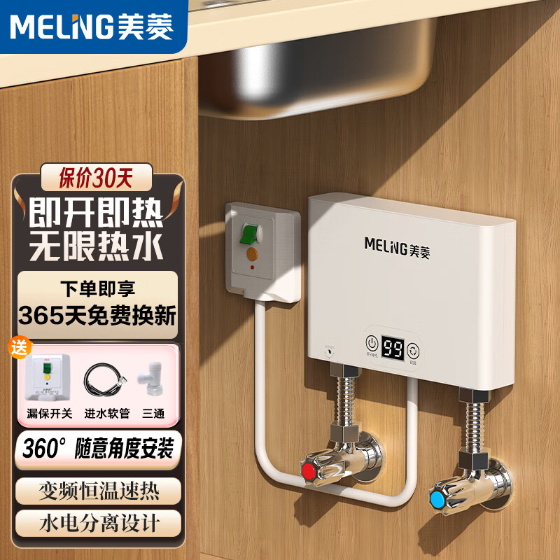 美菱MELNG 即热式电热水器小厨宝/家用厨房不限水量5500W免储水360度随意安装MJR-DC5532漏保开关款价格:248.00元!