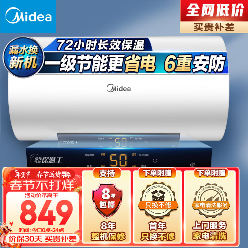 美的(Midea)热水器家用2200W速热可预约低耗节能72小时保温6重安防60升储水式电热水器F6022-M3(H)价格:849.00元!