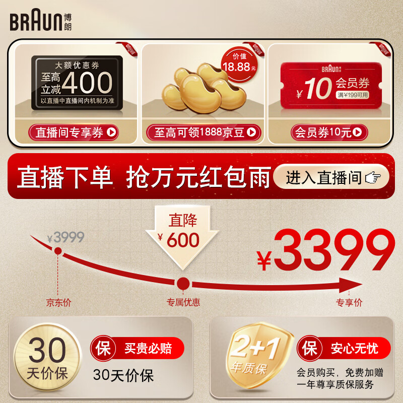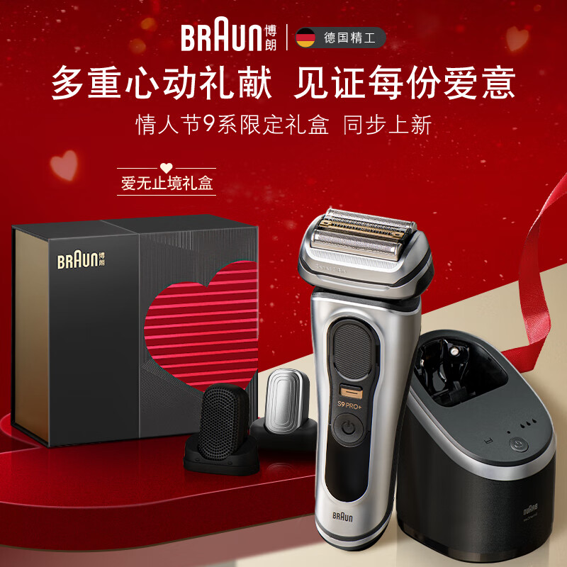 博朗(BRAUN)9系pro+升级版清洁中心多配件龙年礼盒款电动剃须刀整机进口往复式新年礼物送男友送老公价格:3399.00元!