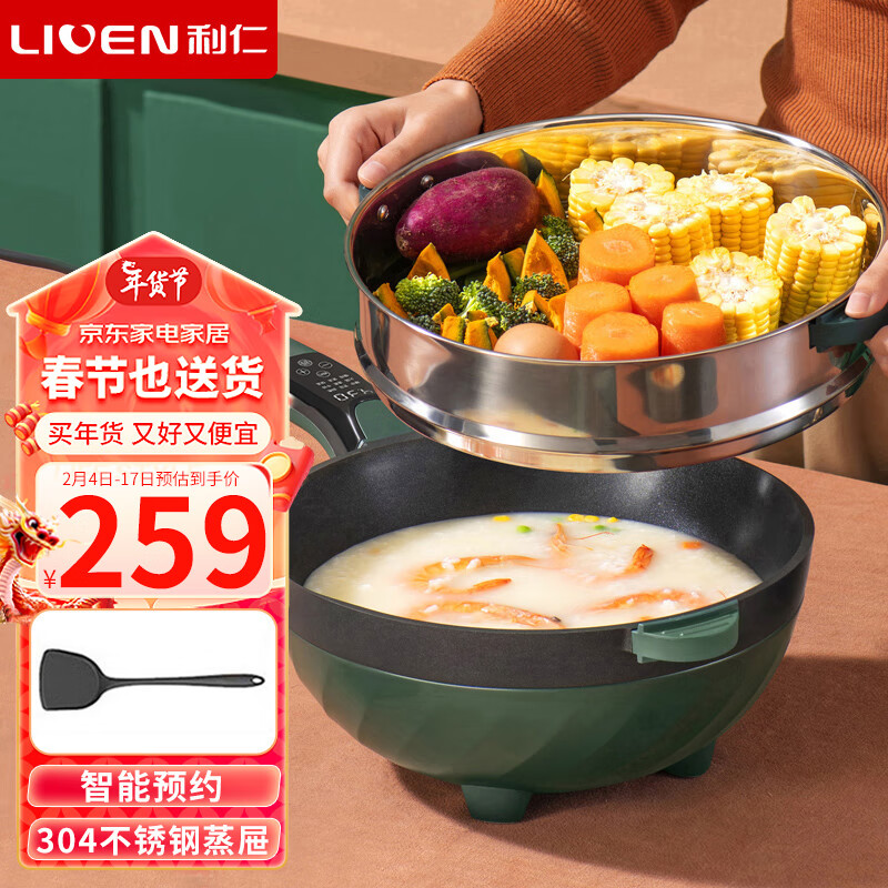 利仁(Liven)电炒锅 电蒸锅 电煮锅 电火锅家用火锅锅 多功能电热锅烤肉锅多用途蒸煮一体锅4升微电脑 G-82价格:289.00元!