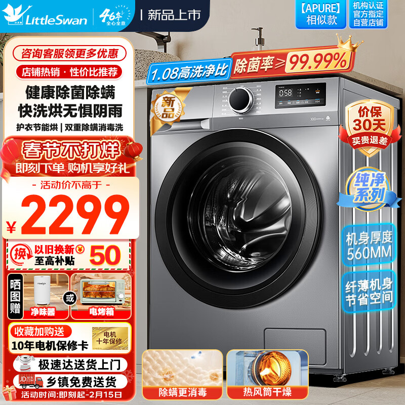 小天鹅(LittleSwan)滚筒洗衣机全自动 10公斤大容量洗烘一体 1.08高洗净比 除菌净螨以旧换新TD100YQ2价格:2269.00元!