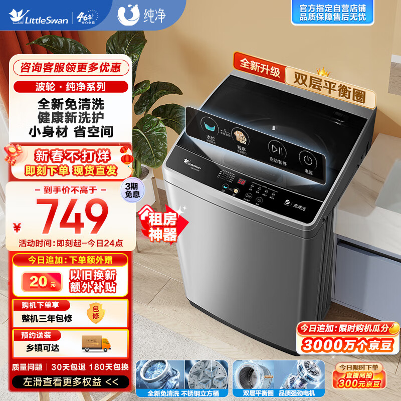 小天鹅(LittleSwan)波轮洗衣机全自动 6.5公斤 健康免清洗 品质电机 宿舍 租房神器 小型迷你 双层平衡圈 TB65V668E价格:749.00元!