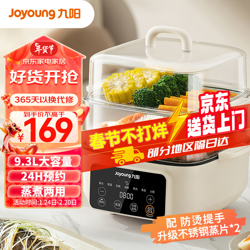 九阳(Joyoung)煮蛋器 家用电蒸锅 大容量蒸蛋器 可蒸可煮可预约双层蒸煮器 早餐蒸煮一体机 ZD20-GE561价格:169.00元!