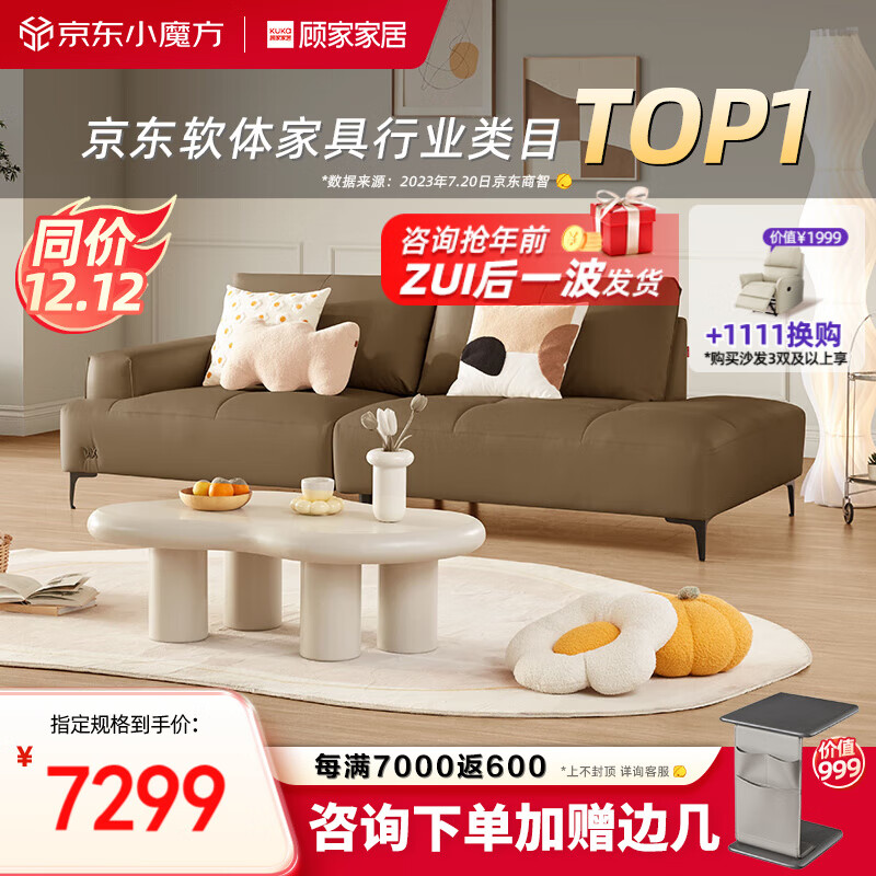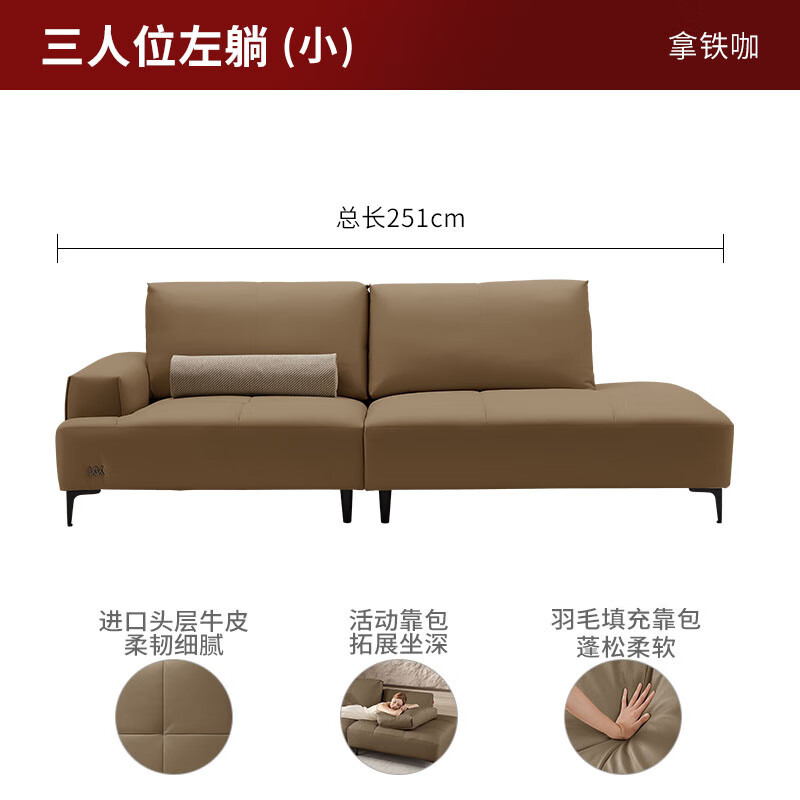 顾家家居(KUKA)皮沙发客厅靠包羽毛填充1213【拿铁咖】3人位自由躺左(2.51米)价格:7299.00元!