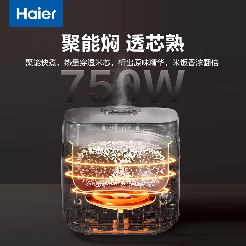 海尔(Haier)电饭煲电饭锅4L晶钻厚釜内胆全息触控屏3-8人七段加热多功能家用智能电饭煲焖香阀防溢锅JC2S4020价格:199.00元!