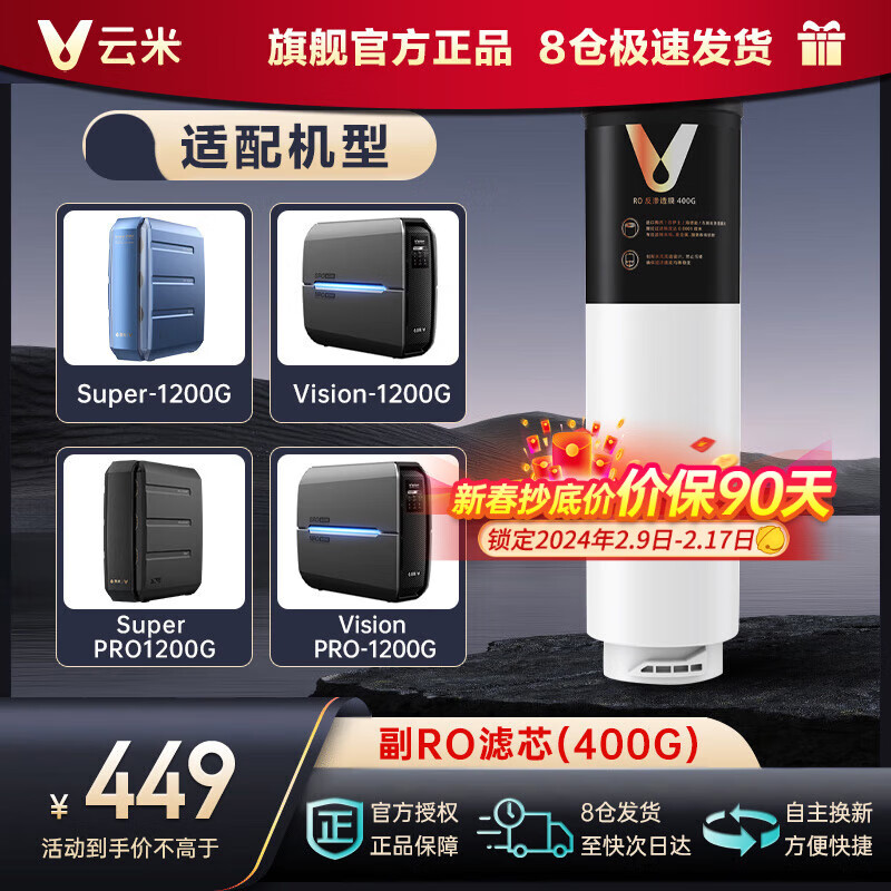 云米(VIOMI) 滤芯澎湃、Easy3系列Super、V1000G/1200G /Super Pro、Vision Pro 1200G RO膜400G(Super、Vision1200)价格:449.00元!