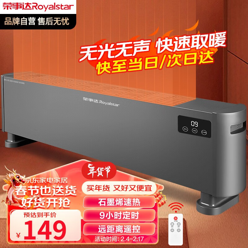 荣事达(Royalstar)""石墨烯""取暖器踢脚线电暖器家用电暖气片全屋速热智能遥控循环对流地暖 NDT-2230XY价格:199.00元!