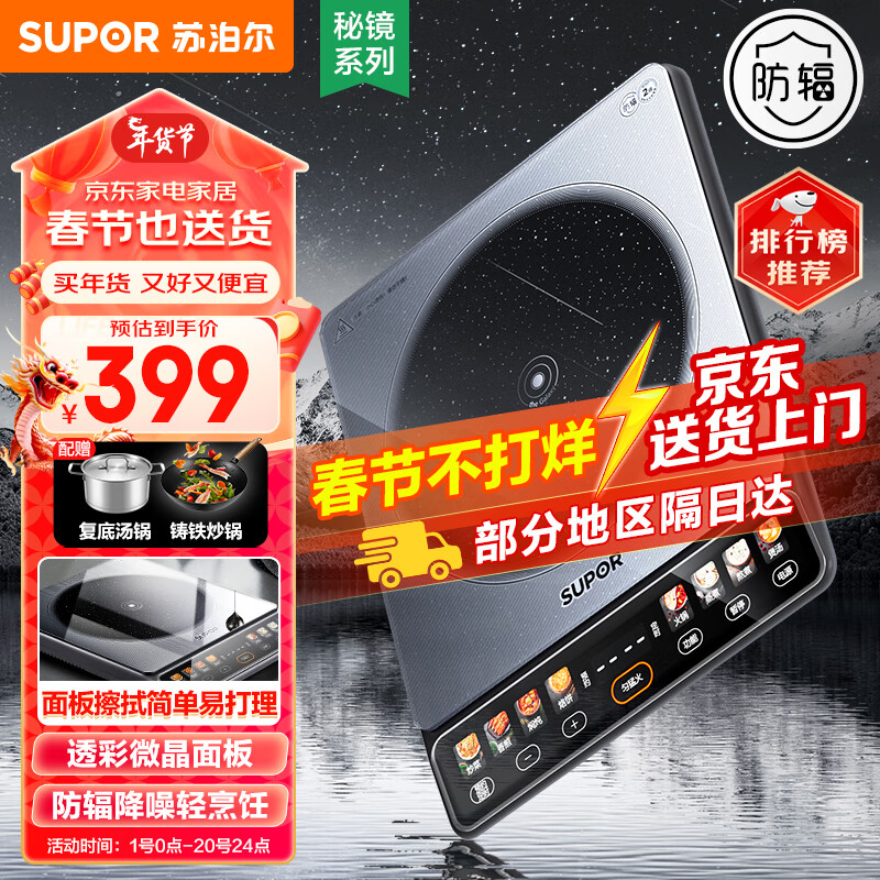 苏泊尔(SUPOR)电磁炉 家用电磁灶火锅炉2200W大功率8大常用烹饪模式22档火力秘镜系列【带双锅】C22-IA812价格:399.00元!