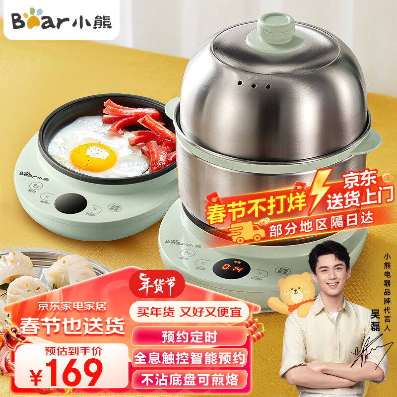 小熊(Bear) 煮蛋器 蒸蛋器 电蒸锅 家用迷你预约定时不锈钢多功能迷你双层蒸锅自动断电煎蛋器 ZDQ-B14Y5价格:169.00元!