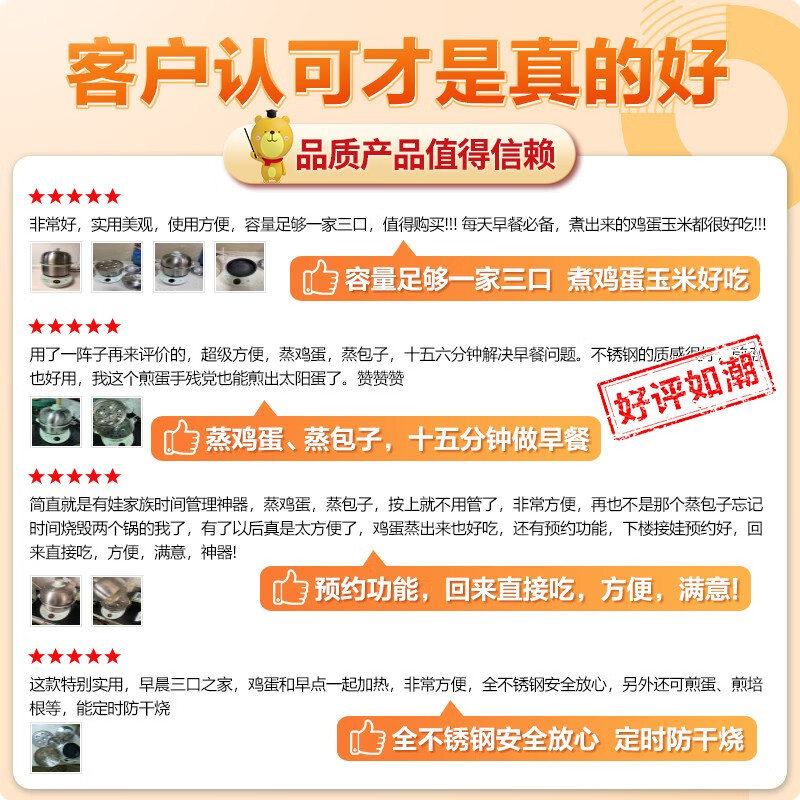 功能:预约功能,煎烙,蒸蛋
