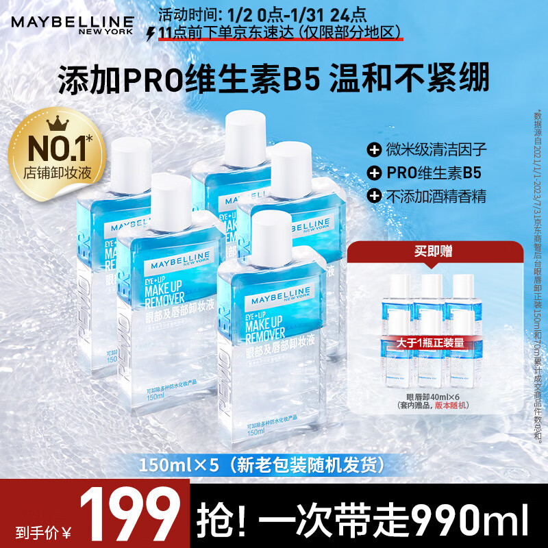 美宝莲眼部及唇部卸妆液150mlx5套装 送眼唇卸40ml*6全脸可卸价格:199.00元!