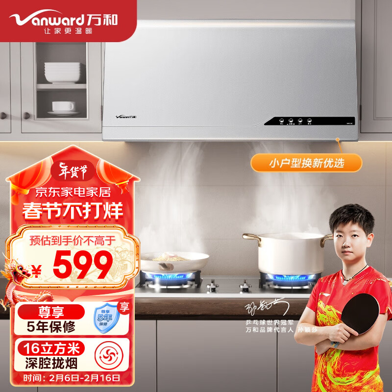 万和(Vanward)抽油烟机 中式家用16m3/min大吸力油烟机 小尺寸脱排顶吸小户型厨房 经典老式吸油烟机 H05C价格:549.00元!