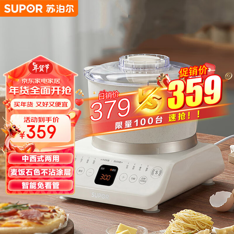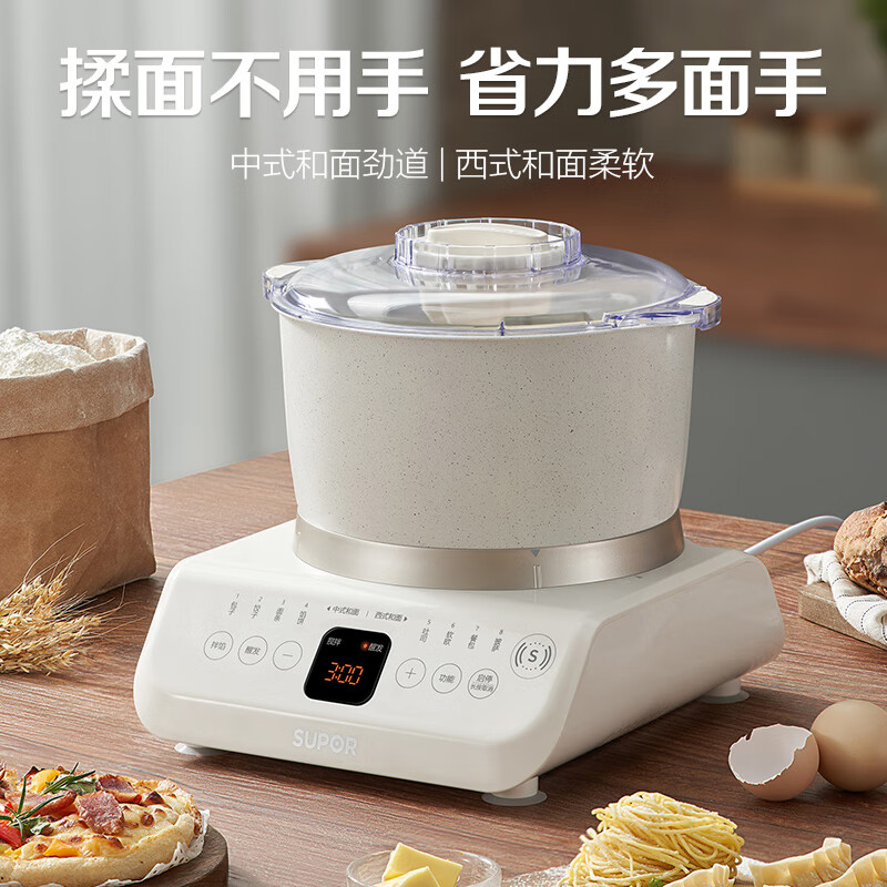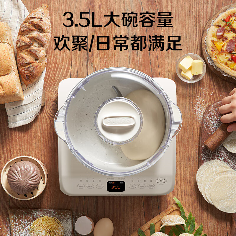 苏泊尔 (SUPOR)和面机家用 3.5L多功能中西式厨师机揉面机 不沾涂层面包发酵醒面拌馅智能食谱 SHM03价格:359.00元!