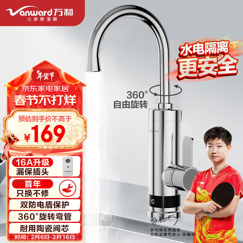万和(Vanward)电热水龙头 下进水双防电盾保护 即热式电热水器冷热两用数显式速热即热式水龙头F-EF22-30价格:169.00元!