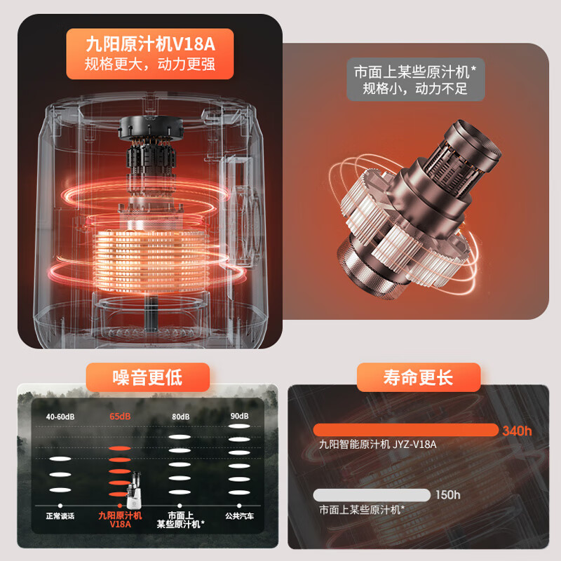 九阳(Joyoung) 原汁机 多功能家用电动榨汁机全自动冷压炸果汁果蔬机渣汁分离 榨汁机【年货】JYZ-V18A价格:469.00元!