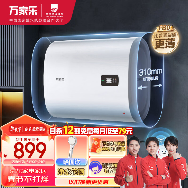 万家乐电热水器扁桶50升储水式2100W速热 WiF智控 高温杀菌 M型活水D50-FB0价格:1098.00元!
