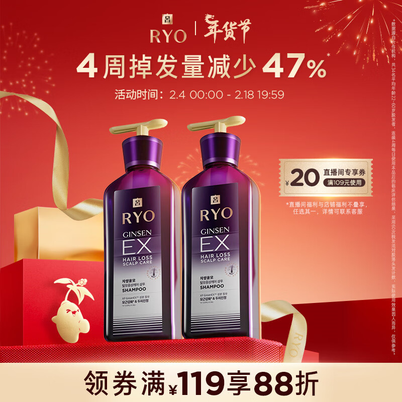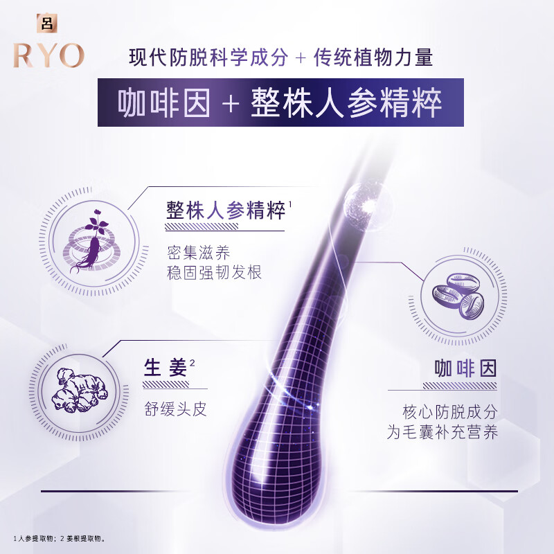 吕(Ryo)防脱吕固发防脱洗发水强韧发根生姜无硅油洗发膏400ml*2价格:180.00元!