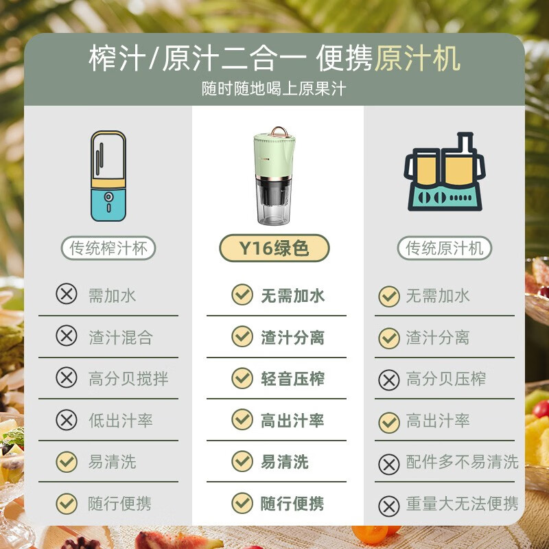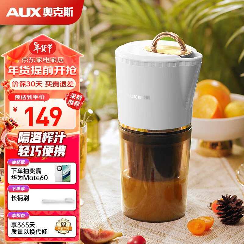 奥克斯 AUX 原汁机榨汁机家用充电式迷你便携式全自动汁渣分离小型多功能电动鲜榨果汁机原汁机Y16白色价格:149.00元!