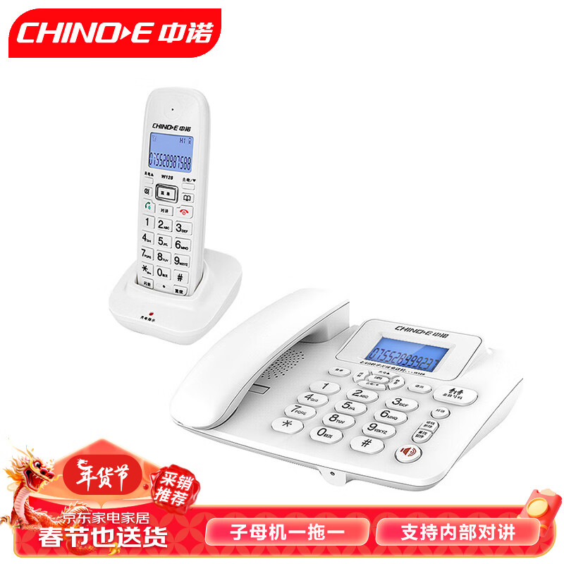 中诺数字无绳电话机无线座机子母机一拖一套装内线通话一键拨号免提通话固定电话W128白色价格:199.00元!