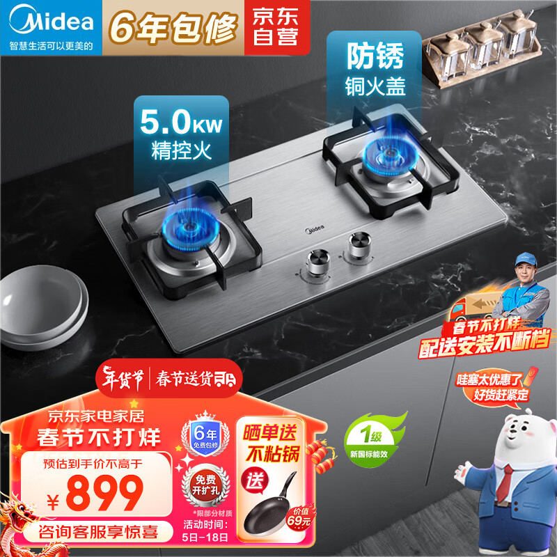 美的(Midea)燃气灶液化气 双灶具 家用5.0kW猛火灶台嵌两用 不锈钢面板 线性精控 一级能效 Q315-M价格:899.00元!