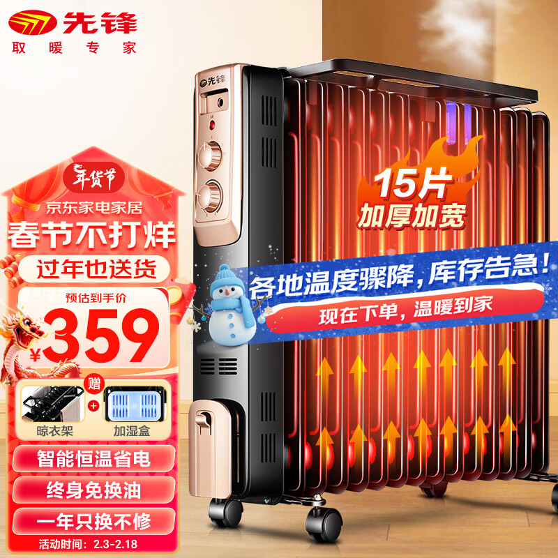 先锋(SINGFUN)取暖器家用电暖器电暖气片家用电热油汀15片全屋速暖低噪节能烘衣加湿DYT-Z2Pro价格:399.00元!